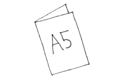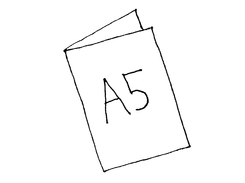 Keskeltä taitettu 4-sivuinen esite, jonka yhden sivun koko on A5 (148 x 210 mm).