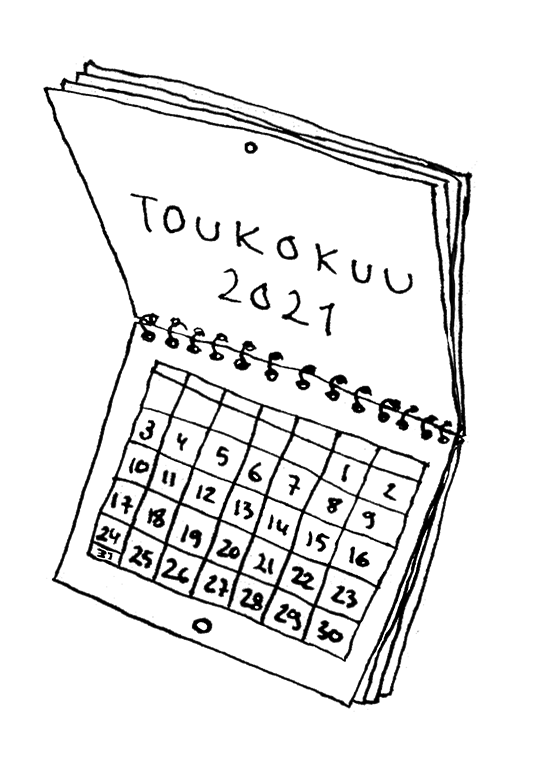 Seinäkalenteri suomenkielisillä nimipäivillä. Toteutus vihkomallisena, jossa sidonta wireellä keskeltä. Kalenterin reunassa on reikä ripustusta varten. Avattuna kalenterin koko on A3.